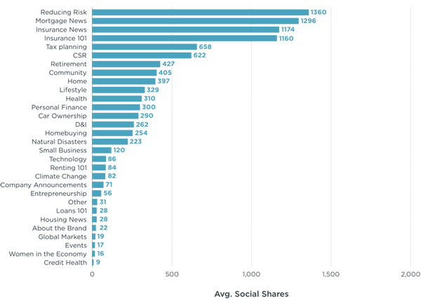 We used StoryBook to analyze the most shared content by topic. The most engaging topics—such as reducing risk, insurance 101, and tax planning—tie back to buying decisions. Some news content related to mortgages and insurance also finished near the top of the list.