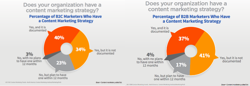 For six years, the Content Marketing Institute (CMI) has studied the evolution of content marketing. Sometimes, the numbers from its reports are encouraging for the industry. Other times, not so much. One statistic frequently thrown around is that, in both B2B and B2C, the majority of marketers do not use documented content strategies.