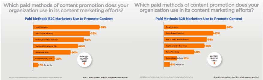 Across B2B and B2C, promoted posts saw big leaps in usage, particularly for B2C, which jumped from 52 percent last year to an incredible 89 percent this year.