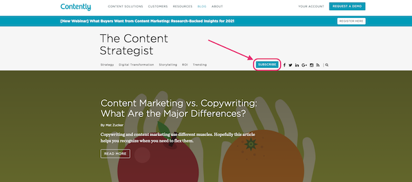 The other big mistake many marketers make is burying a link to their newsletter in the footer of their website. Signing up for your newsletter shouldn’t feel like a treasure hunt.