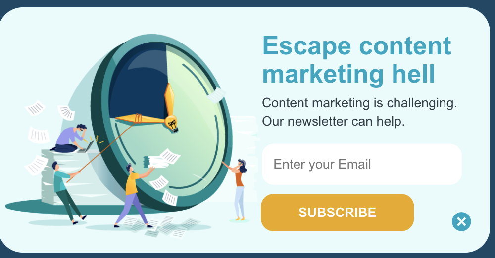 Our best performing newsletter CTA—which consistently converts visitors to subscribers at nearly a 3 percent clip—is simple: “Escape content marketing hell.”