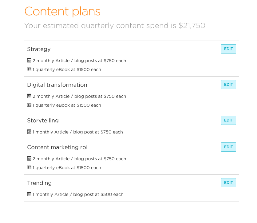 By individually aligning each plan to specific goals or campaigns, the Content Plan provides a clear roadmap of content initiatives that cater to various audience segments and business needs. Assigning a specific budget to each plan offers greater financial transparency and streamlines budget management.
