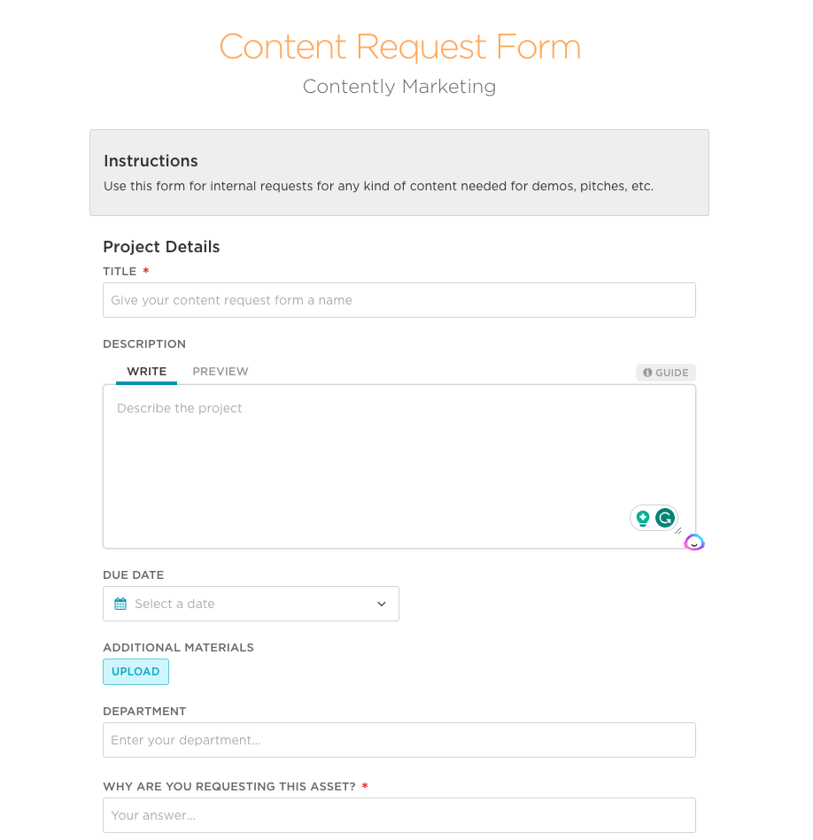 Content teams often receive projects to support other departments within their organizations. Without an effective way to manage and streamline requests, marketers can find it difficult to gather all the needed information.