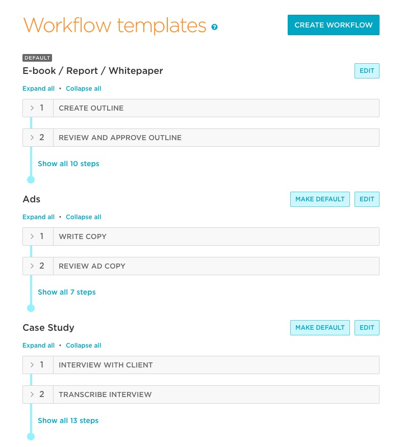 Contently’s workflow templates are a powerful tool that helps brands streamline their content production process. Users can delineate specific content creation stages, including production, review, and approval, and assign these responsibilities to the appropriate team members. By defining these workflows, teams can ensure every piece of content is effectively managed and overseen throughout its lifecycle, enhancing overall content quality and consistency.