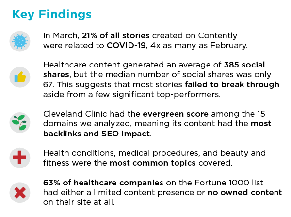 That’s what we’ve set out to answer in this report. We’ve extracted the most important healthcare content marketing trends using a combination of quantitative and qualitative data. We spoke to industry experts, analyzed macro content trends using our in-house content strategy technology, and highlighted companies creating great content. We also identified common challenges while explaining ways healthcare marketers could overcome them.