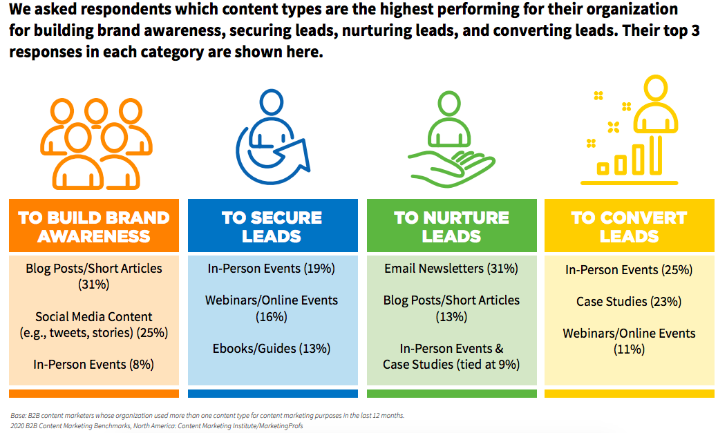 This personality has a point. Per HubSpot, 78 percent of marketers noticed an increase in email engagement over the last year. And according to Content Marketing Institute’s 2020 B2B Benchmarking Report, marketers rated email newsletters as the best way to nurture leads, ahead of blog posts, in-person events, and case studies.