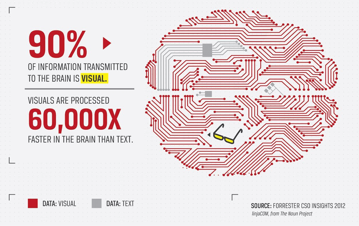 According to a Stanford Persuasive Technology Lab study, 46.1 percent of people say that “design look” is the top criteria for perceiving the credibility of a brand. Design and UX impact read time, bounce rate, conversion rate, etc. Just imagine if Contently looked like it was a forum built in 2000. This isn’t surprising. According to a 2012 Forrester CSO study, 90 percent of information transmitted to the brain is visual, and the brain processes visuals 60,000x faster in the brain than text.