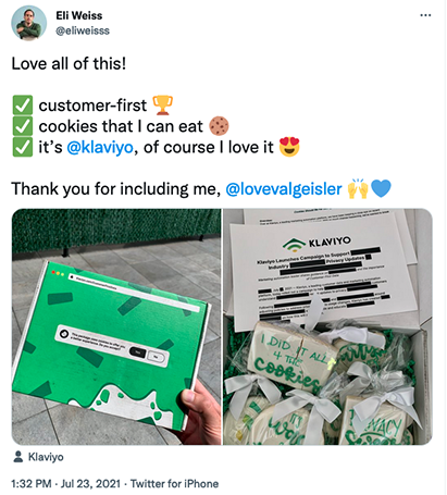 For example, when Klaviyo partnered with influencers for their Less Stalking, More Talking campaign, they chose only relevant influencers, like Eli Weiss, who share their customer-first philosophy and have high authority in the e-commerce industry.